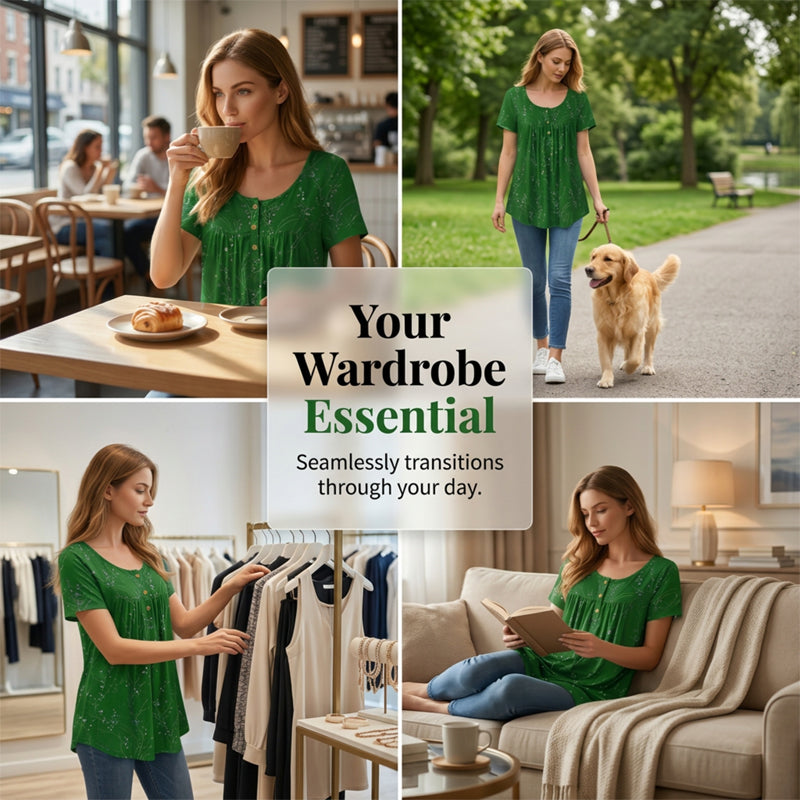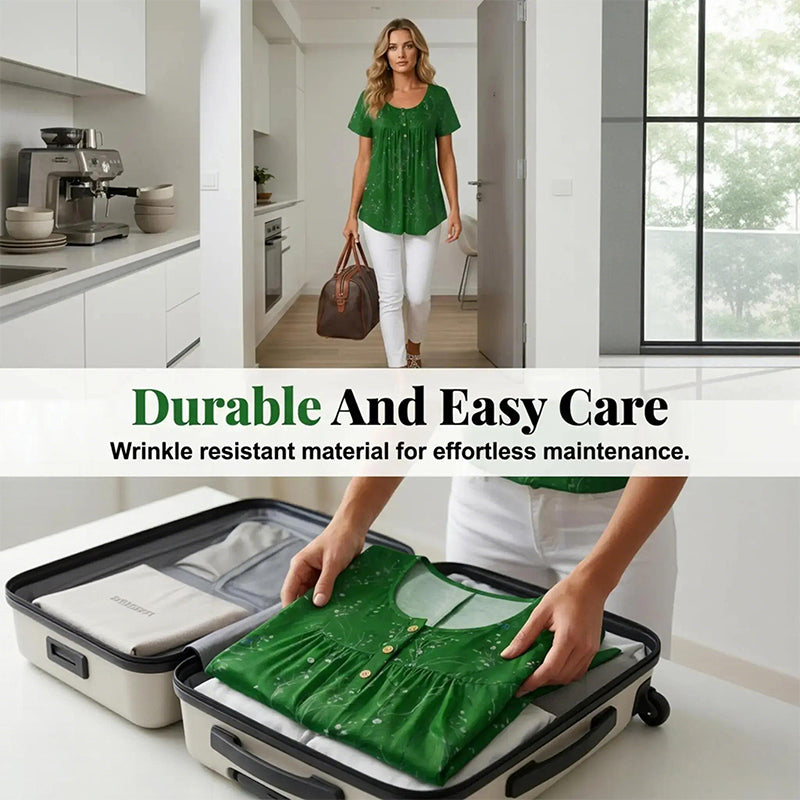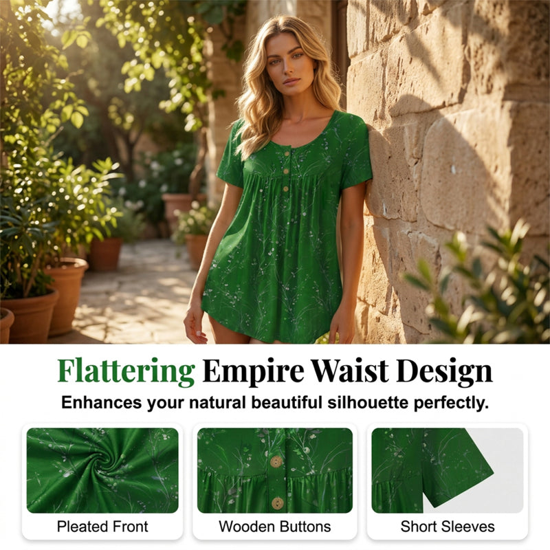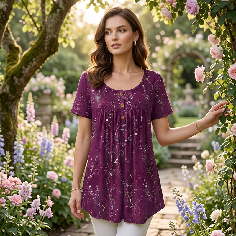 Damski top tunika w kwiatowy wzór z plisowaniem