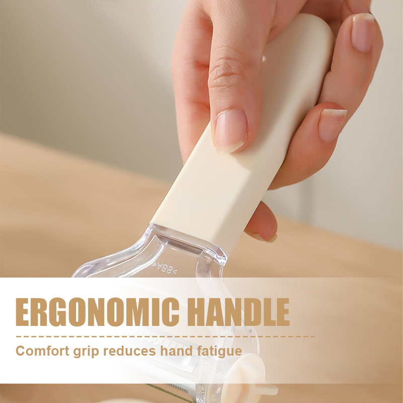 ŁATWA OBSŁUGA I WYGODNA – Zaprojektowany z przedłużoną rączką wykonaną z materiałów PP i ABS, oferuje antypoślizgowy, ergonomiczny uchwyt, który zmniejsza zmęczenie dłoni podczas długotrwałego użytkowania. Obieraczka wykonana jest z materiałów bezpiecznych dla żywności, dzięki czemu można ją bezpiecznie stosować w bezpośrednim kontakcie z owocami i warzywami. Lekka konstrukcja w połączeniu z wyważonym designem poprawia kontrolę i sprawia, że codzienne przygotowywanie posiłków w kuchni jest szybsze i łatwiejsze.