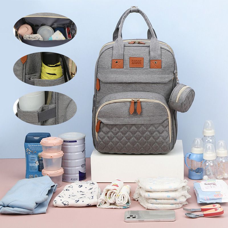 Przestronny plecak na pieluchy może pomieścić wszystkie niezbędne rzeczy, w tym rzeczy rodziców i dziecka, dobrze zorganizowane, nie będąc zbyt nieporęcznymi, które są najbardziej potrzebnymi przedmiotami w życiu codziennym. Izolowane kieszenie na butelki mogą pomieścić większość butelek z szeroką szyjką lub wysokich butelek dla niemowląt, od 5 uncji do 11 uncji.