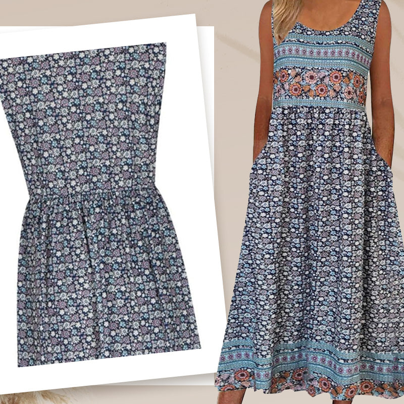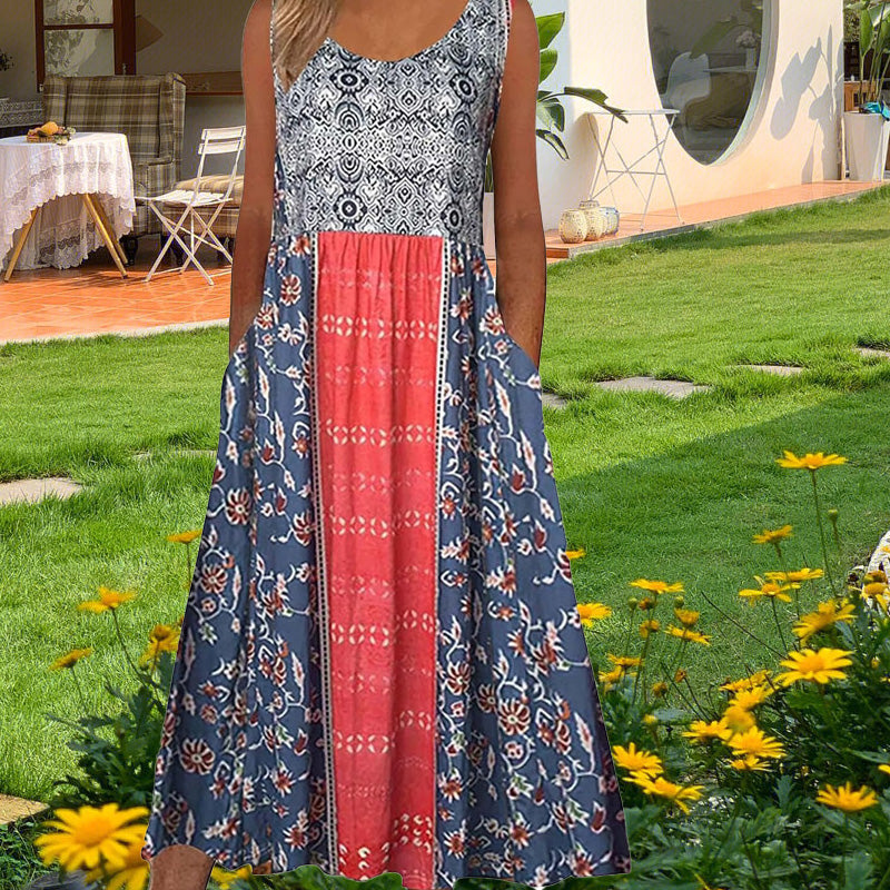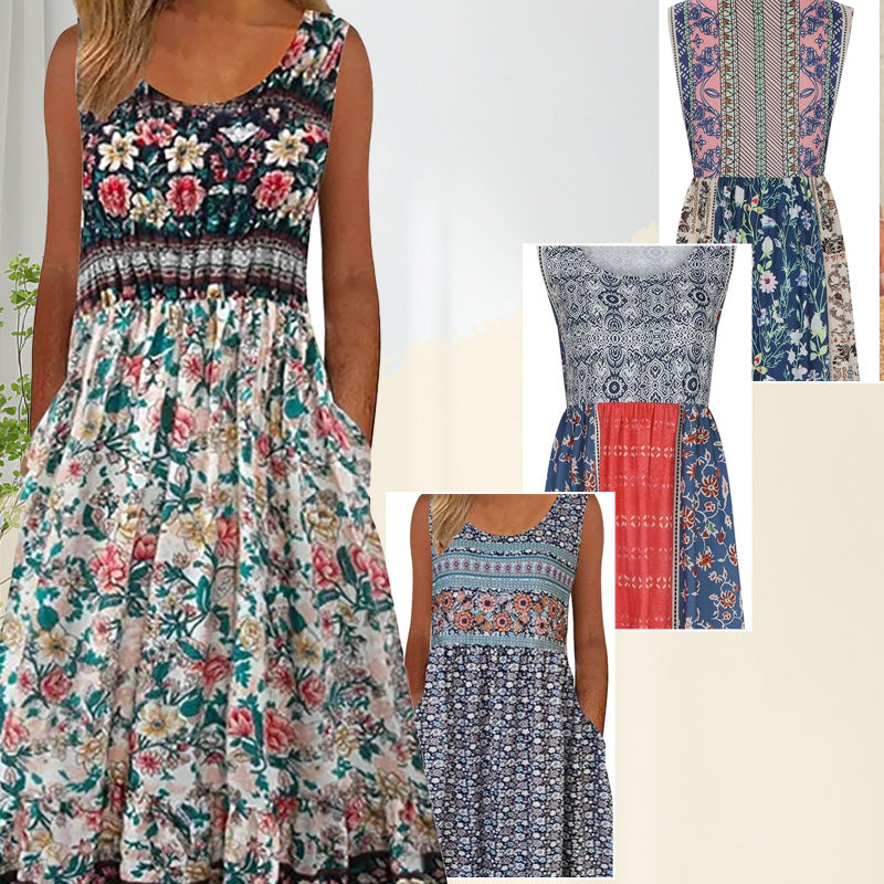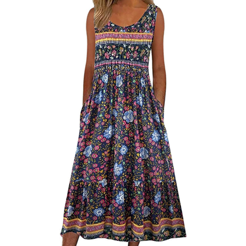 Damska Sukienka Bez Rękawów Z Kwiatowym Nadrukiem