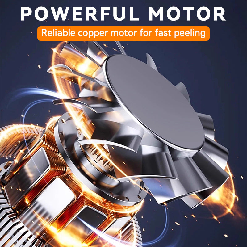 Mocny silnik z miedzianym uzwojeniem – Wyposażony w wysokowydajny silnik z miedzianym uzwojeniem, ten elektryczny obierak skutecznie i szybko radzi sobie z wszelkiego rodzaju owocami i warzywami. Silnik zapewnia stałą moc, bez wysiłku obierając nawet małe owoce, bez zacinania się i utraty wydajności. Jego trwałość i niezawodność sprawiają, że jest on oszczędzającym czas sprzymierzeńcem w każdej kuchni.