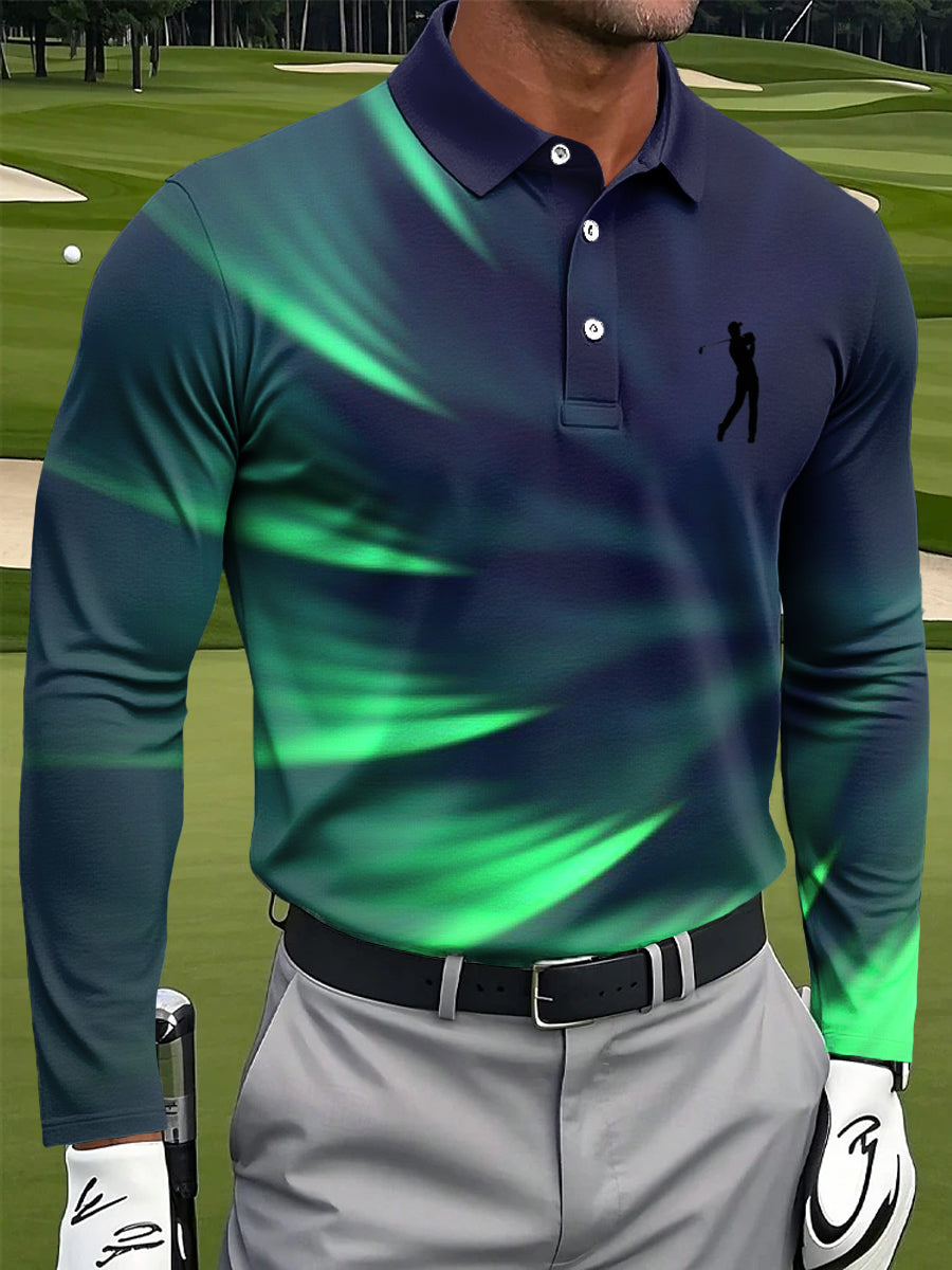 Męska abstrakcyjna linia Swirl Art Print Casual Business Koszulka polo z długim rękawem