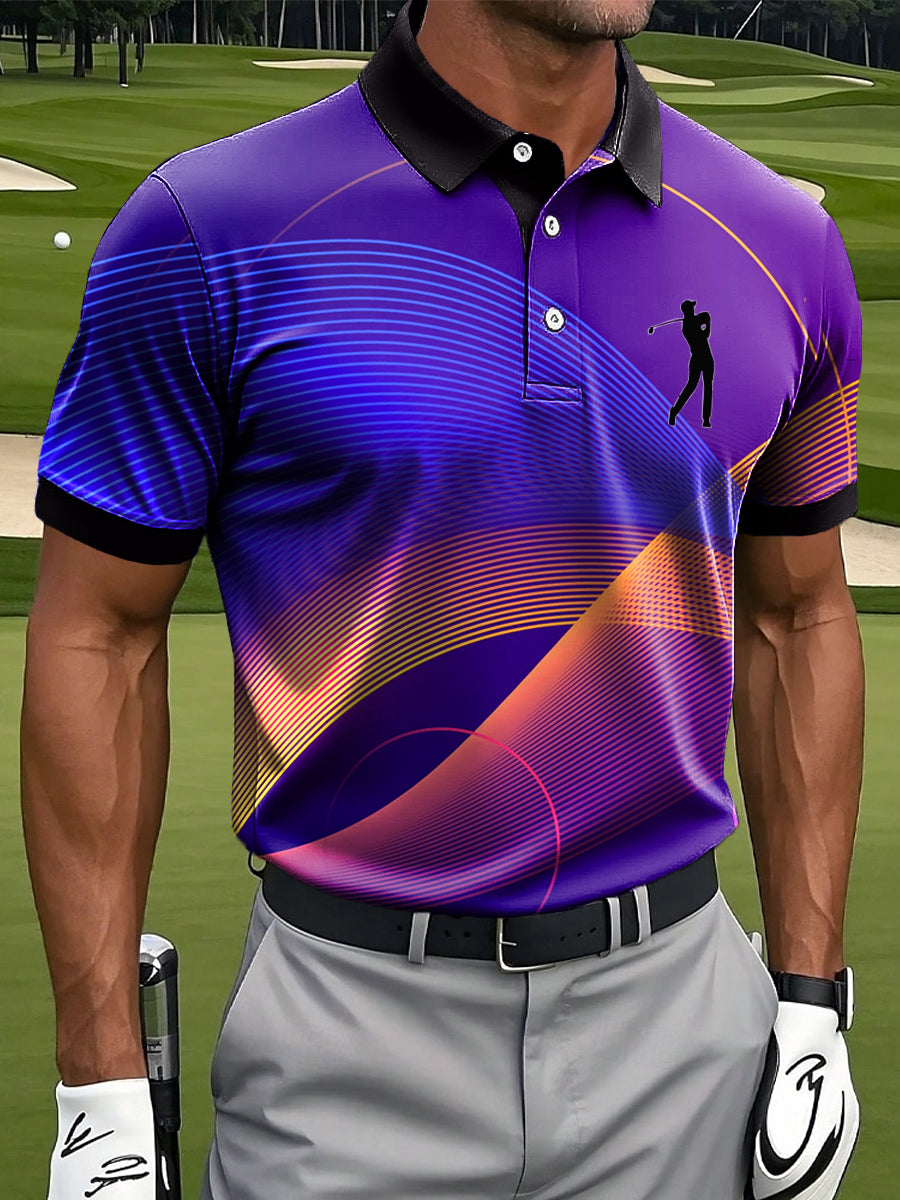 Męska kolorowa koszulka polo biznesowa w paski z teksturowanym artystycznym nadrukiem