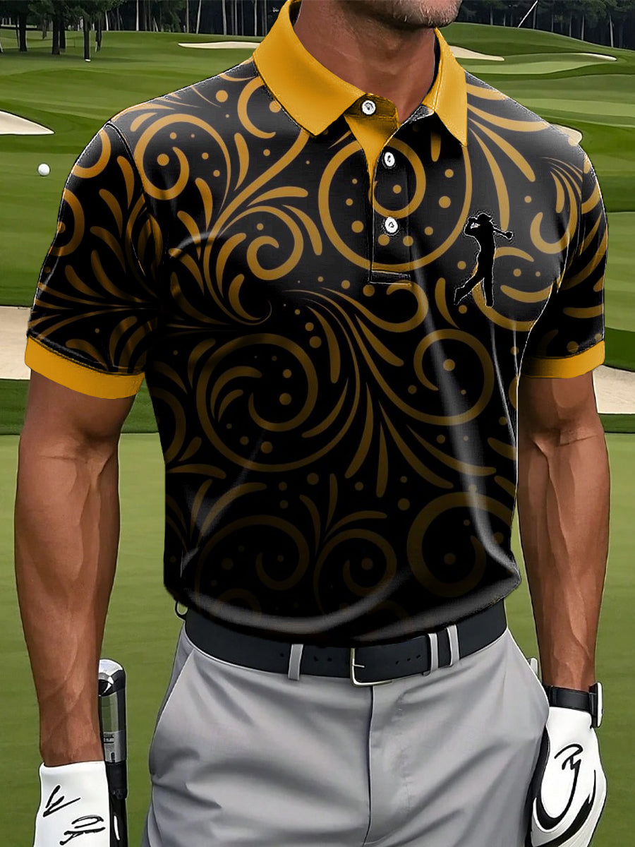 Męska koszulka polo biznesowa z nadrukiem abstrakcyjnym w stylu retro z motywem kwiatowym