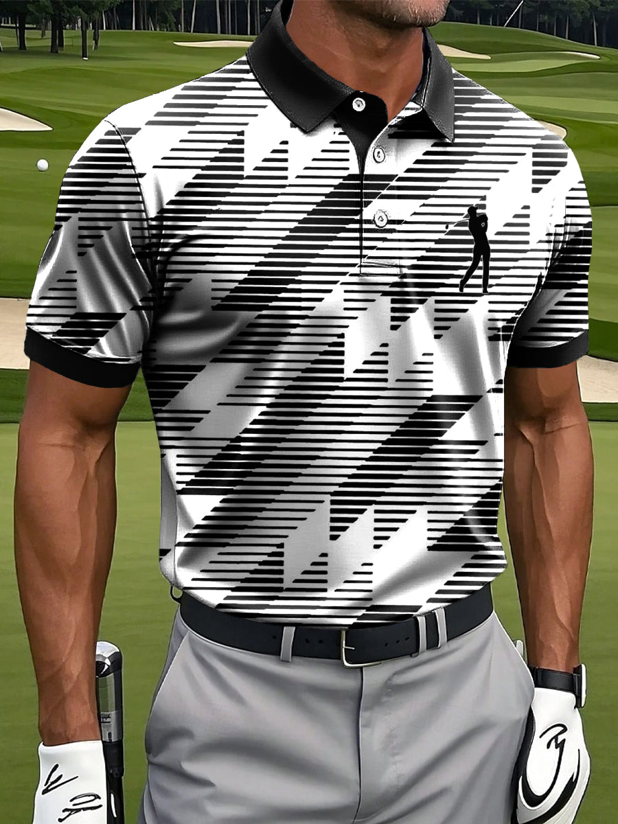 Męska koszulka polo biznesowa z nadrukiem w paski w stylu retro