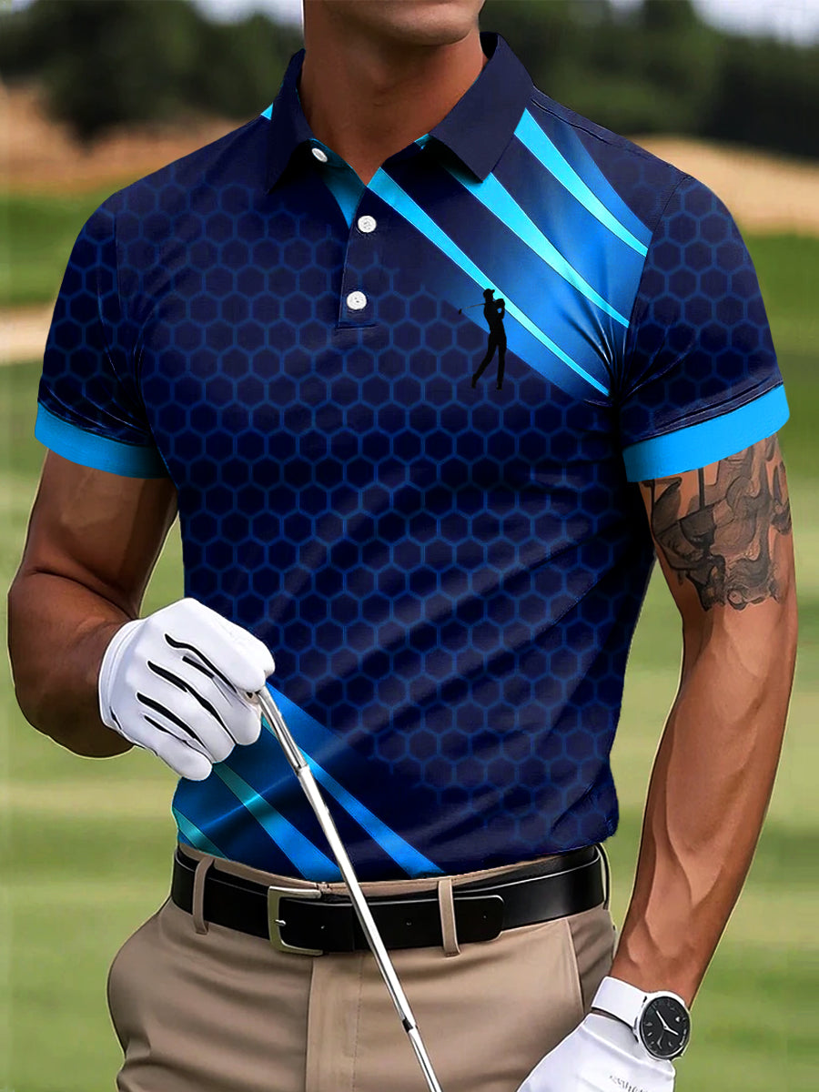 Męska koszulka polo w stylu casual Business Gradient geometryczne linie geometryczne