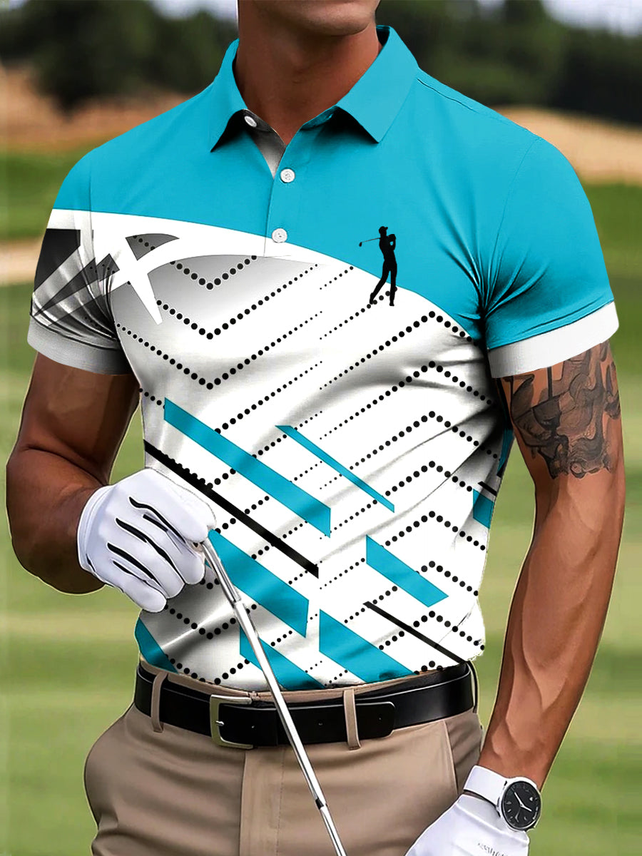 Męska koszulka polo z artystycznym nadrukiem w golf w paski