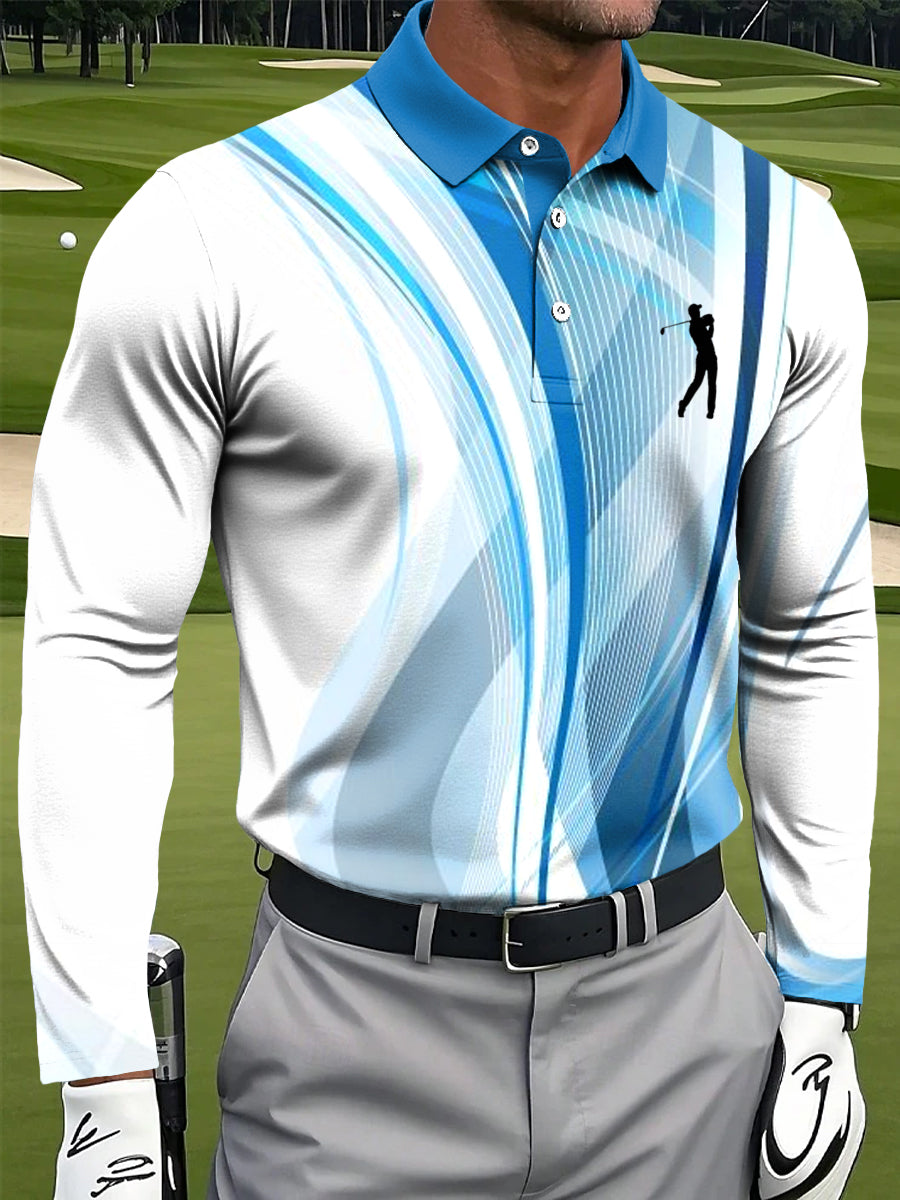 Męska koszulka polo z długim rękawem w stylu retro z nadrukiem falowym