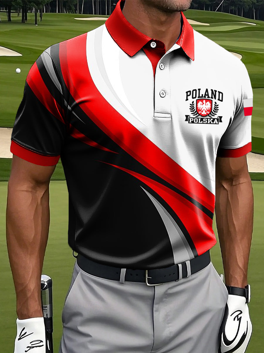 Męska koszulka polo z godłem z flagą polską z nadrukiem artystycznym na co dzień
