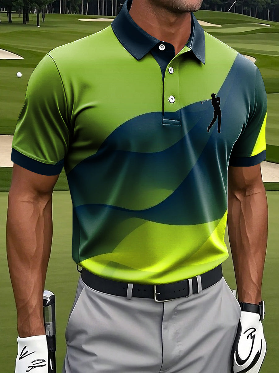 Męska koszulka polo z nadrukiem artystycznym w stylu retro z falami