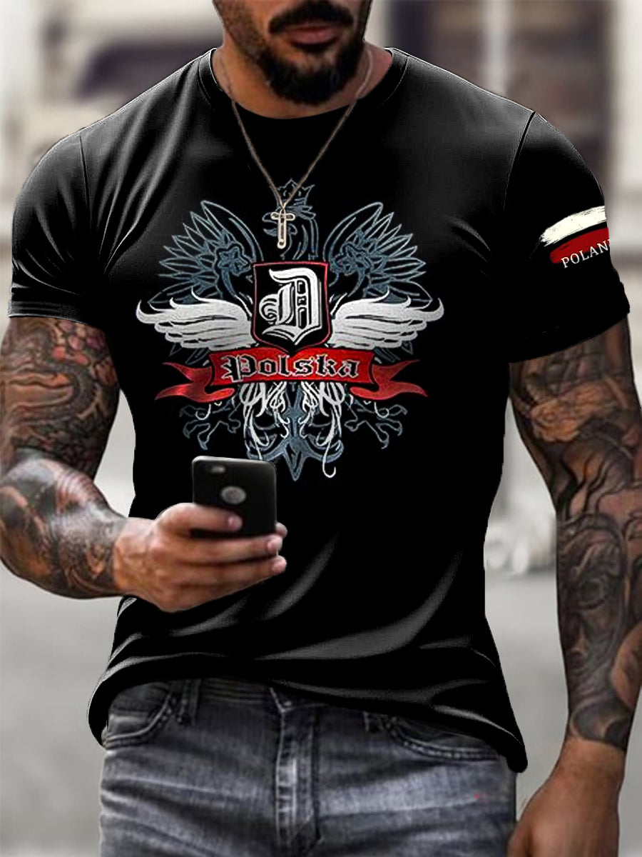 Męska koszulka z nadrukiem artystycznym z flagą polskiego orła