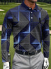 Męska retro symetryczna geometryczna koszulka polo z długim rękawem w geometryczny wzór