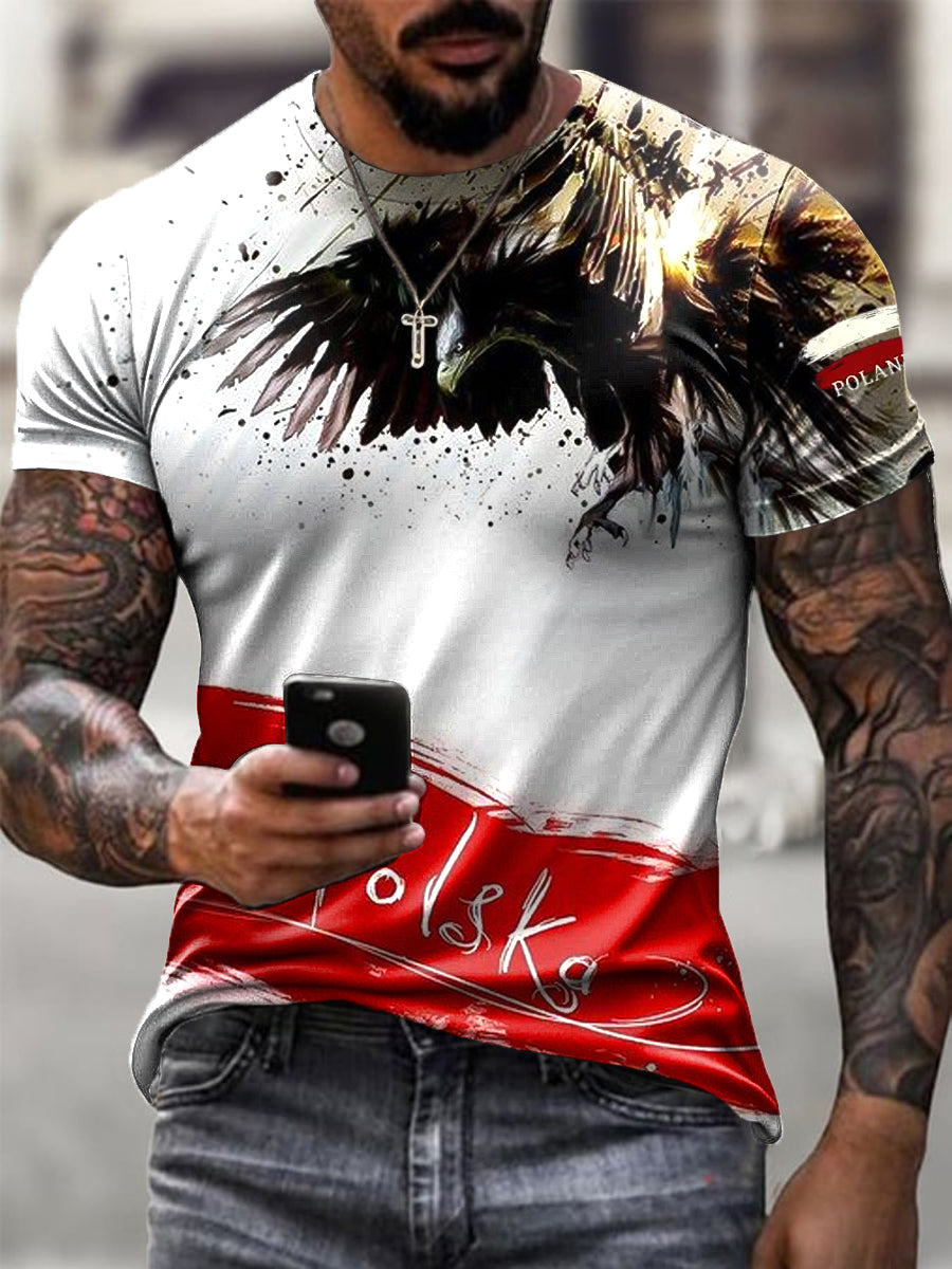 Męski Vintage Polski Orzeł Flaga Art Print Casual T-Shirt