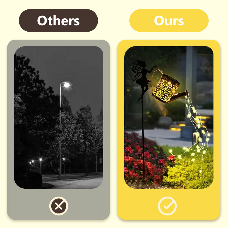Czarująca magia ogrodu: ta zasilana energią słoneczną lampa w kształcie konewki tworzy w ogrodzie magiczną i bajkową atmosferę – tak jakby wróżki podlewały rośliny świecącymi kroplami. To idealny sposób, aby dodać cudowności i nastrojowości przestrzeni zewnętrznej.