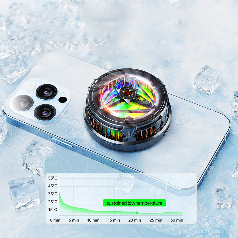 Ulepszona inteligentna kontrola temperatury - ten schładzacz do telefonu ma dużą powierzchnię, wysoką przewodność i bezpośrednie chłodzenie do pozycji UPC, skutecznie zapobiegając nagrzewaniu się i blokowaniu telefonu. poprawia płynną pracę i dłuższą żywotność urządzenia, a także może regulować temperaturę między dwoma biegami, aby zaspokoić różne potrzeby chłodzenia.
