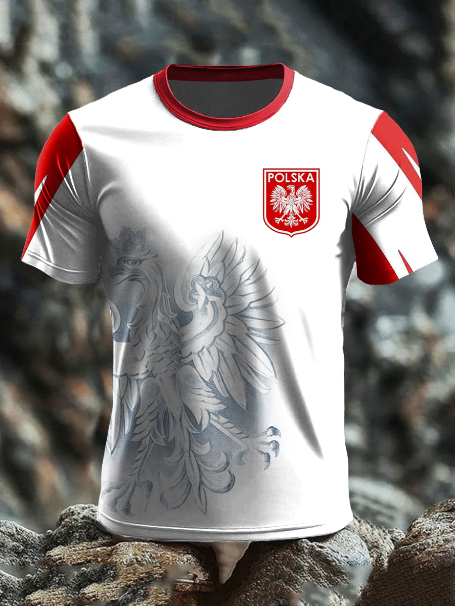 Retro Polski Orzeł Herb Art Print Casual T-Shirt