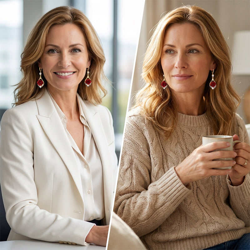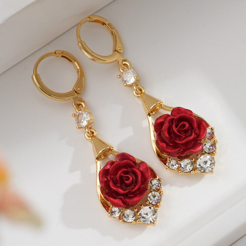 ELEGANCKI MOTYW RÓŻY – Te pięknie wykonane kolczyki, z czerwonymi różami w centrum, symbolizują romantyczność i namiętność. Misterne detale nadają im ponadczasową elegancję, sprawiając, że każda stylizacja staje się bardziej wyrafinowana i znacząca.
