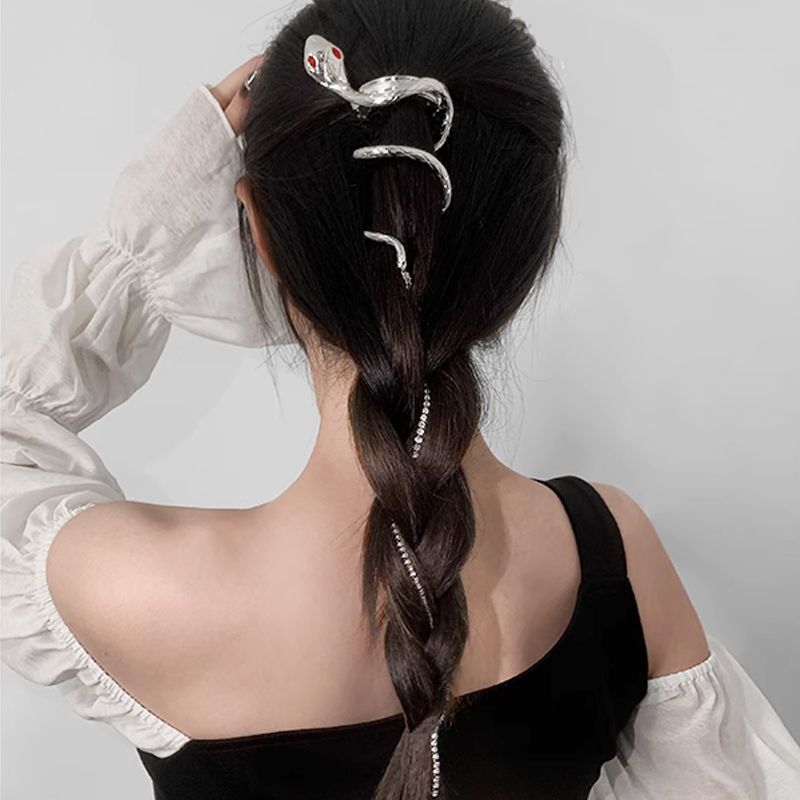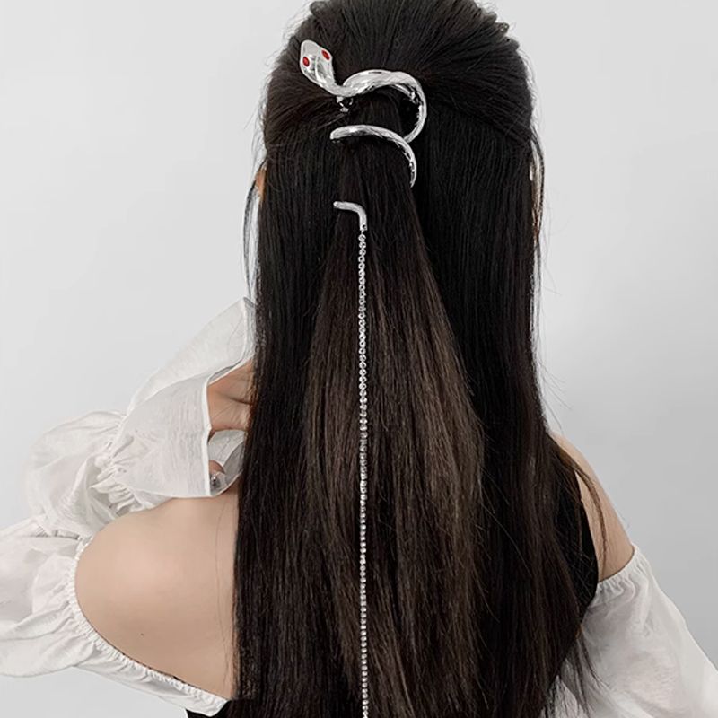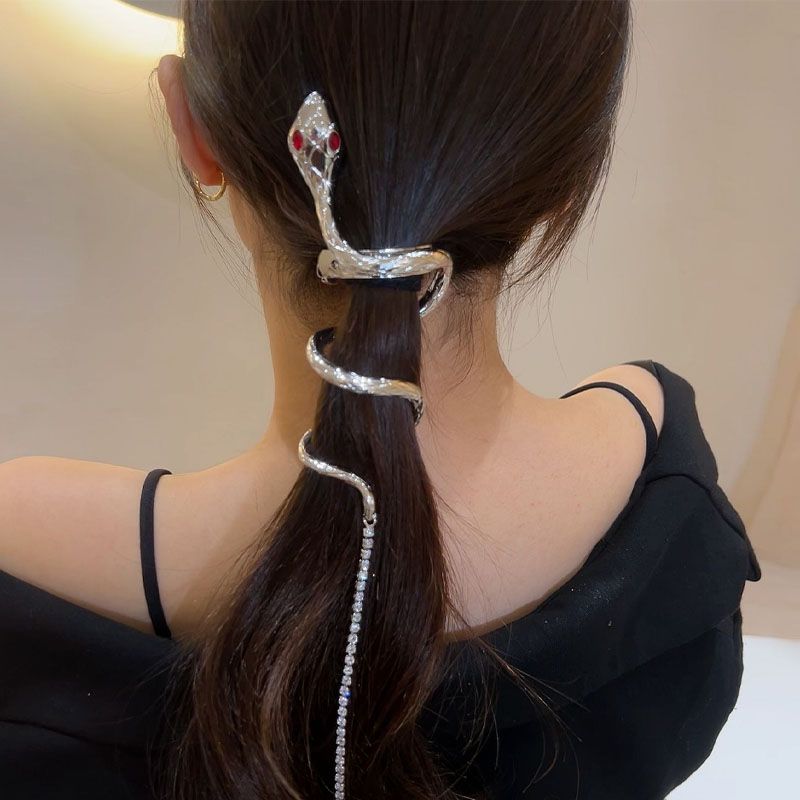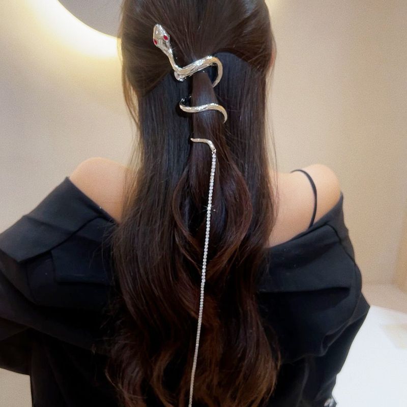 Błyszcząca spinka do włosów z długimi frędzlami w kształcie węża