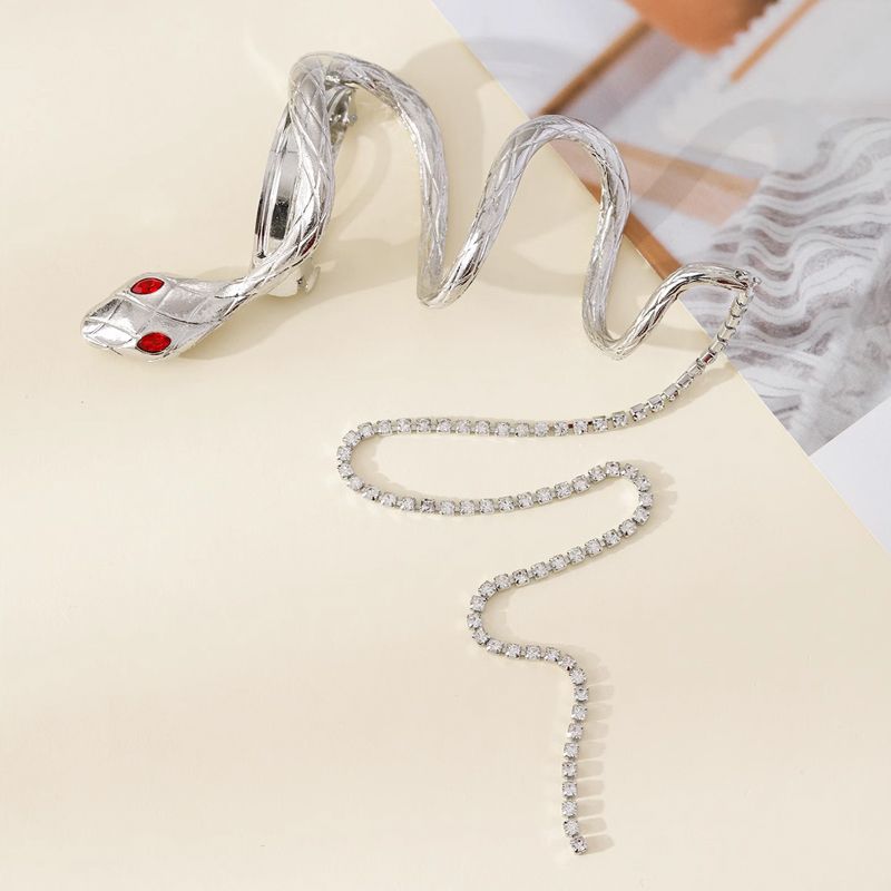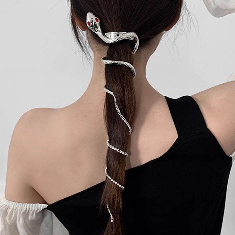 PRZYCIĄGAJĄCY WZROK DESIGN: Misternie zaprojektowana, skręcona spinka do włosów w kształcie węża ozdobiona błyszczącymi akcentami, tworząca efektowny i efektowny dodatek.