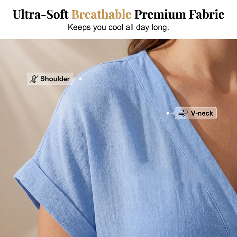 ULTRA-SOFT BREATHABLE PREMIUM FABRIC - Crafted from a high-performance, skin-friendly texture, this jumpsuit ensures maximum breathability. Stay cool and comfortable from morning strolls to evening lounging.