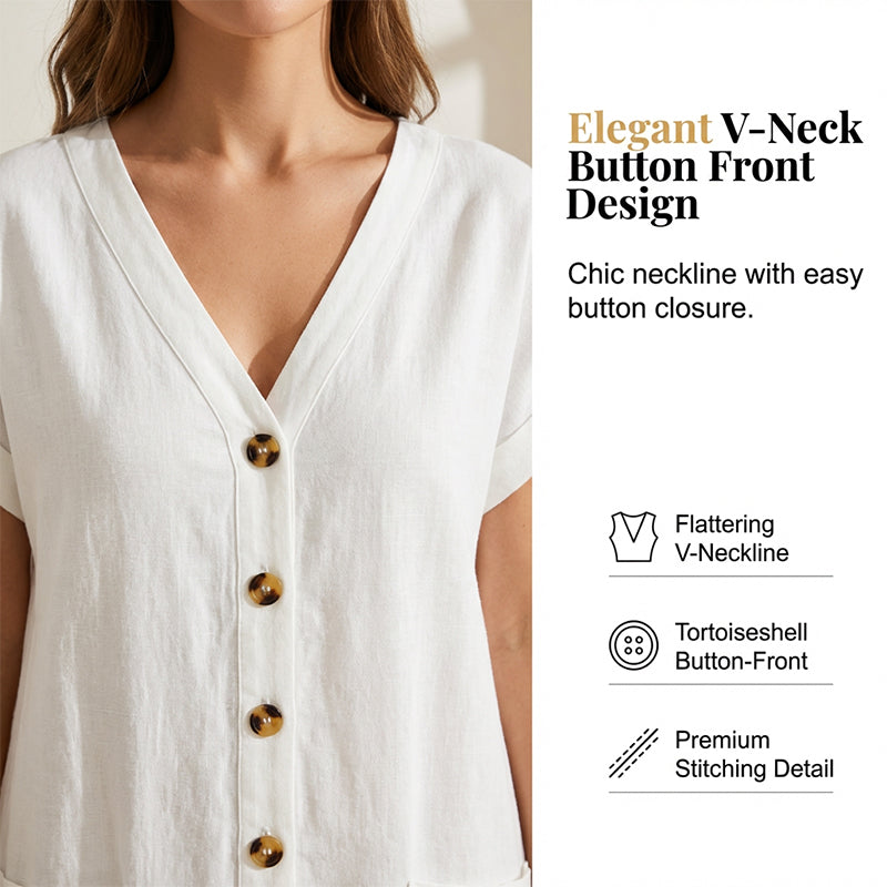 ELEGANT V-NECK BUTTON FRONT DESIGN - The flattering V-neckline and classic button-front detailing add a touch of sophistication. Easily slip it on and off while maintaining a polished look.