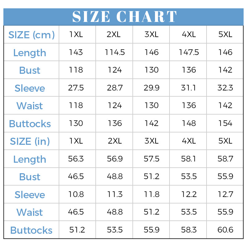Size: XL, 2XL, 3XL, 4XL, 5XL