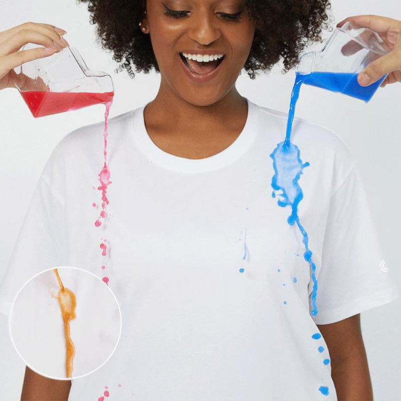 TECHNOLOGIA HYDROFOBOWA:Nasze koszulki mają właściwości hydrofobowe, które zapobiegają wchłanianiu płynów. Rozlane płyny i plamy po prostu zbierają się i spływają, zapewniając suchość i czystość. Koniec z obawami o rozlaną kawę lub przypadkowe zachlapanie!