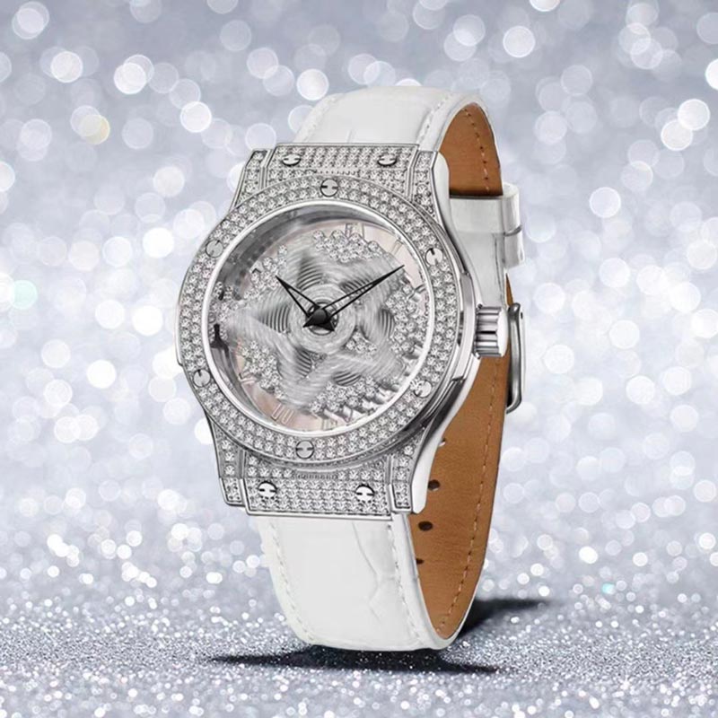 Luksusowy damski zegarek, który dodaje uroku nadgarstkowi. Modny i bardzo uroczy prezent dla rodziny i przyjaciółek!