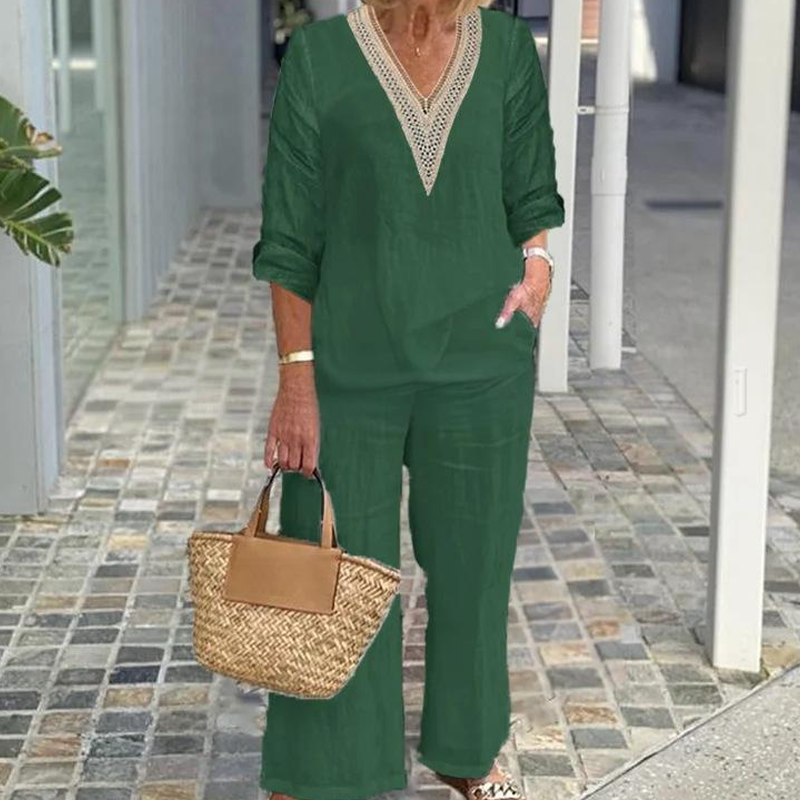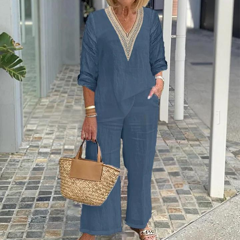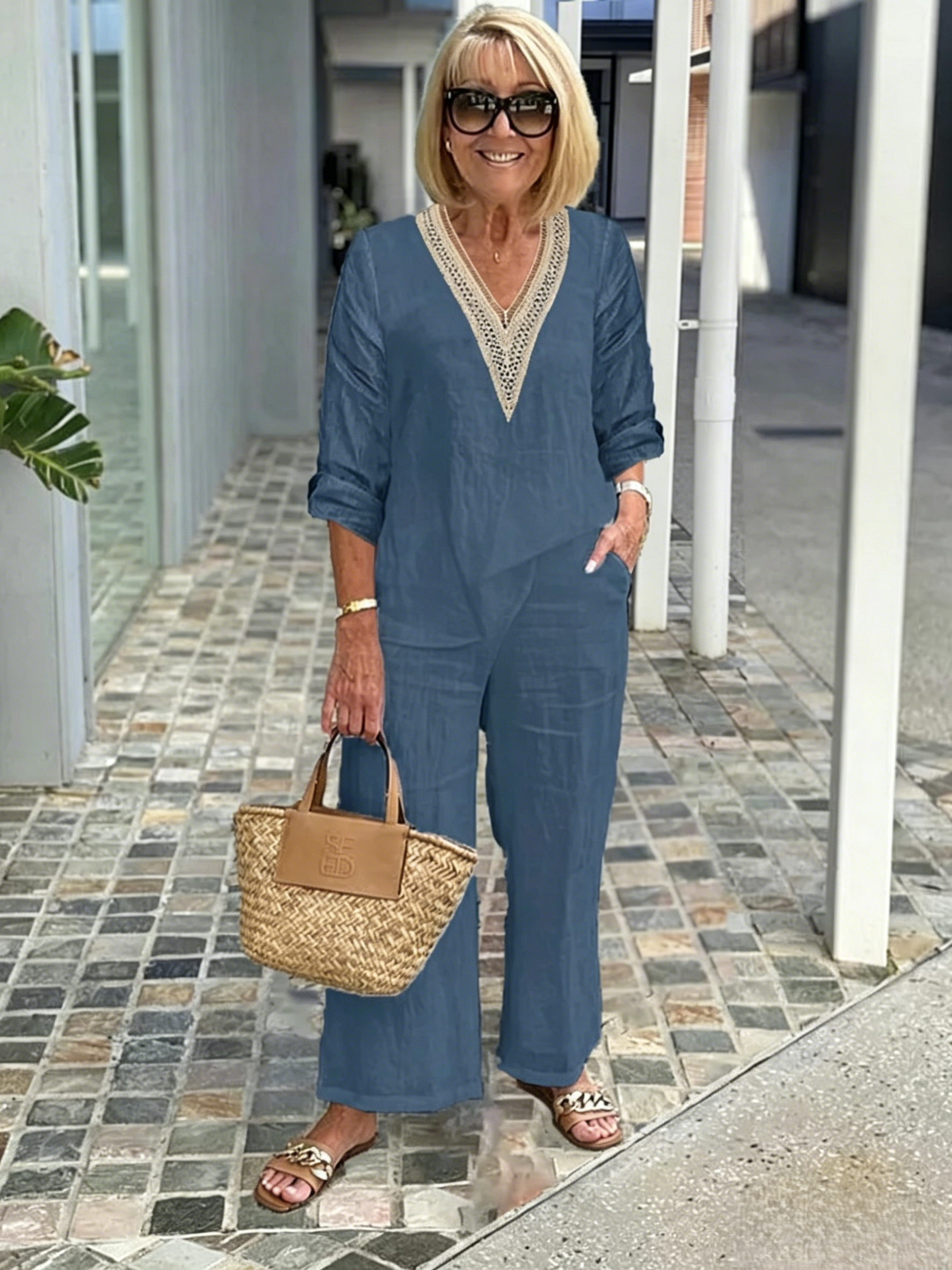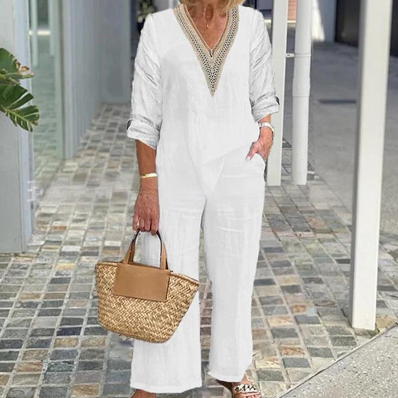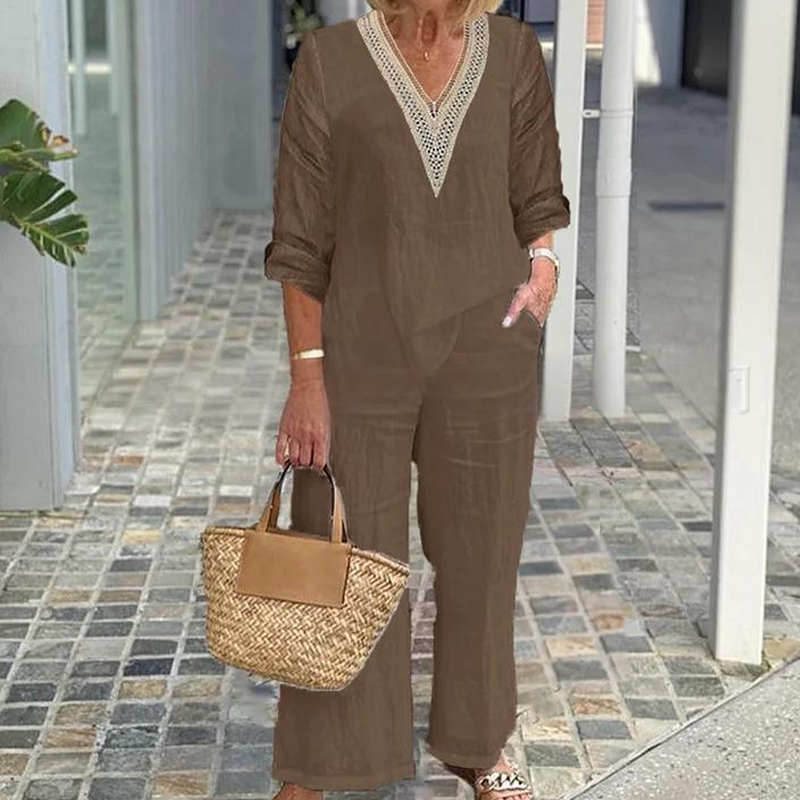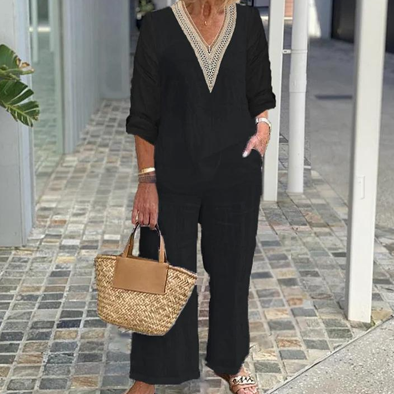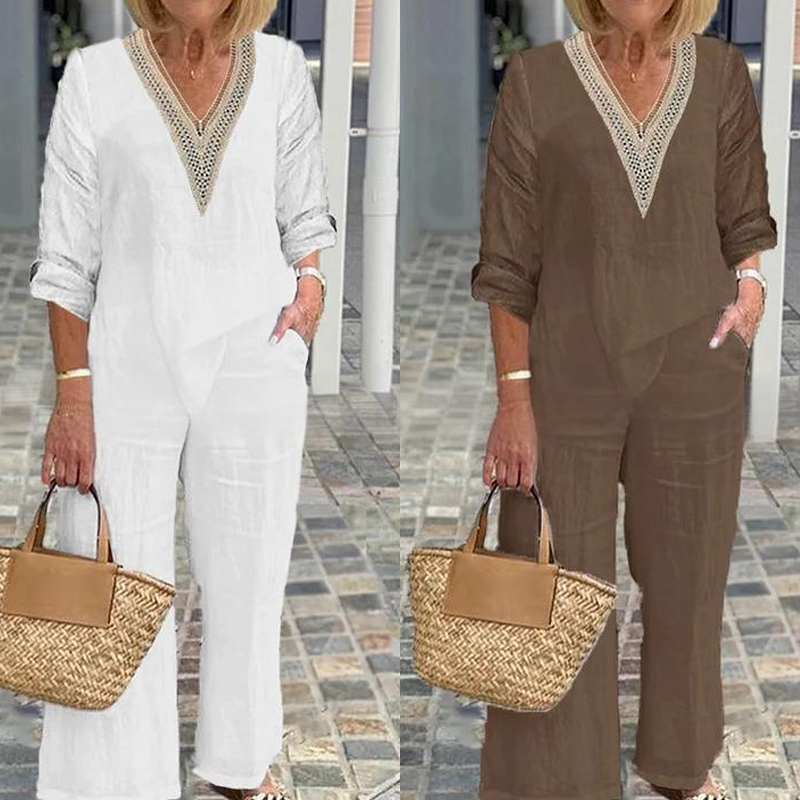 Zestaw zawiera: 1* Damski top z dekoltem V i spodnie o szerokich nogawkach