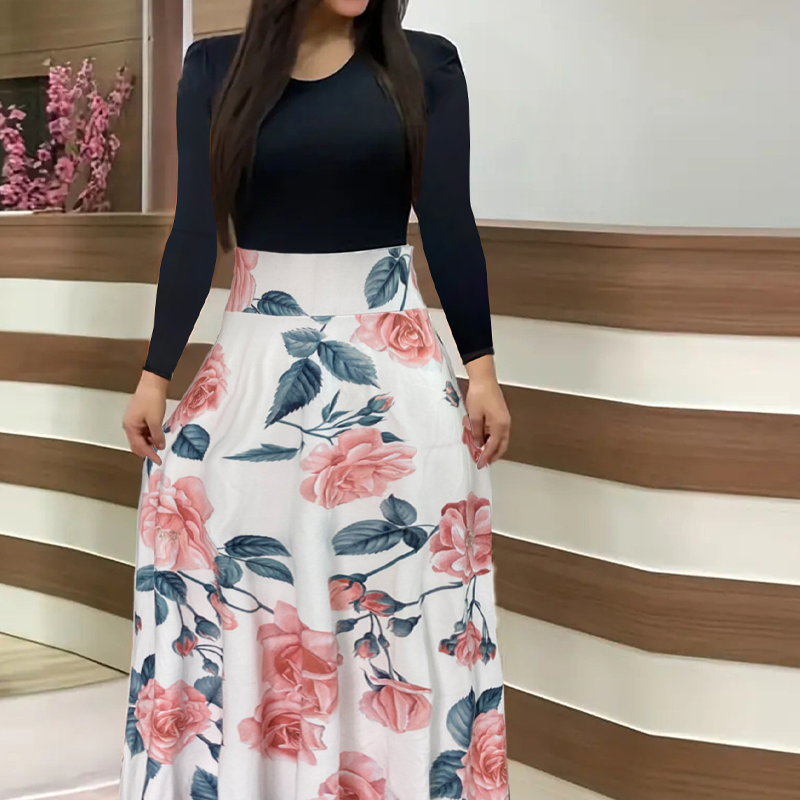 STYLIZACJA DWUCZĘŚCIOWA Z WSTAWKAMI - Ten projekt łączy jednokolorowy top z kwiecistą spódnicą, oferując skoordynowaną elegancję kompletu z łatwością pojedynczej sukienki, oszczędzając Twój czas, gdy wyglądasz bez wysiłku szykownie.
