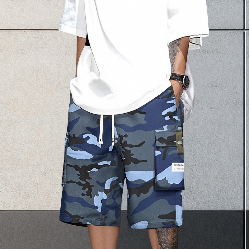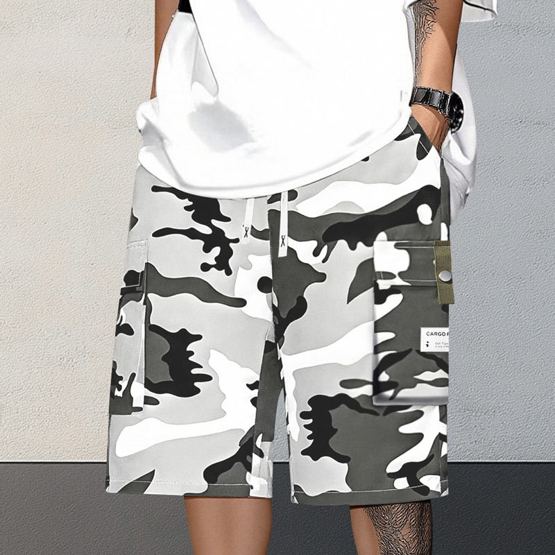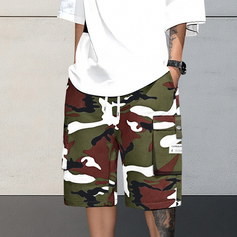 Zestaw zawiera: 1* męskie szorty cargo w kamuflażu ze sznurkiem w pasie