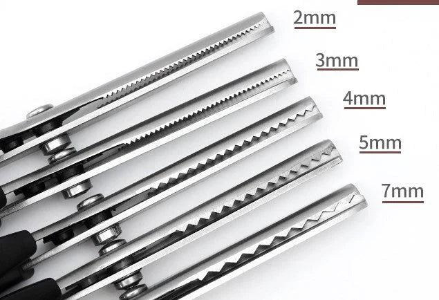 ZACZNIJ TWORZYĆ:Ząbkowane ostrza zapewniają dodatkowe detale, dzięki czemu idealnie nadają się do pikowania , krawiectwa i lamowania . Można ich również używać do cięcia tkanin lub papieru, ponieważ zapewniają ostre, trwałe ostrze, które tnie aż do samego końca.