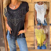 STYLOWY DESIGN: Technika tłoczenia na gorąco dodaje tej damskiej koszulce z krótkim rękawem w jednolitym kolorze odrobinę blasku i elegancji, dzięki czemu nadaje się ona na swobodne i półformalne okazje. Obszycie z frędzlami dodaje zabawnego i modnego detalu, podkreślając ogólną estetykę koszulki.